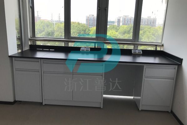 1、臺面:采用12.7mm厚實驗室專用理化板,周邊加厚至25.4mm,倒圓角處理. ,防強酸強堿,耐磨耐高溫。不含任何有毒物質,無輻射。